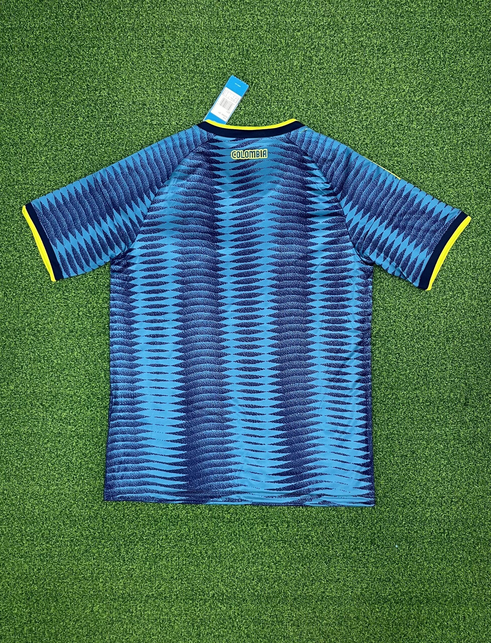The last time Colombia wore a blue away shirt was in the 2020 away shirt, which also mixed two shades of blue (with yellow and red accents).